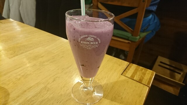 ブルーベリーとラッシーをミキサーにかけてすぐ出てきてブルーベリー感もあり美味し〜い(≧∇≦)/