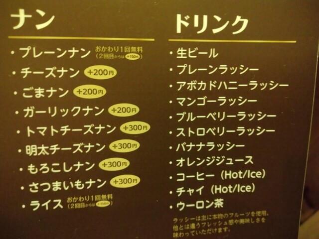 ☆ディナーセット・カレー・ナン・アラカルトは写真を参照してください