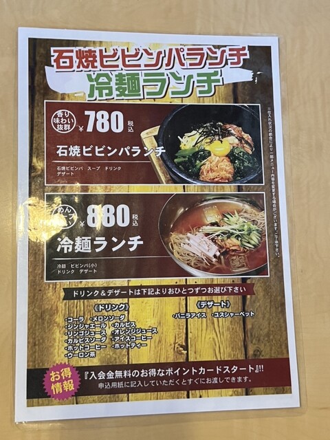 ホルモンは4種類で野菜付き。前菜はキムチとナムル、サラダはチョレギ、スープはワカメ。