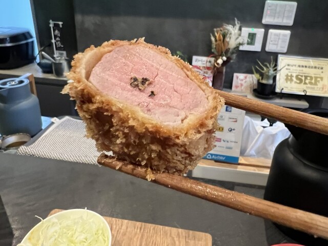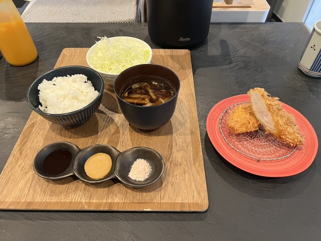 荒めでソフトなパン粉。油はしっかり落ちている。ササミはとろけるような食感。クリーミーで鶏の甘味が広がる。そのままでも十分美味しいが、つけ塩を少し加えると、より味がハッキリする。ヒレは肉汁たっぷりで心地よい歯ごたえ。肉肉しく、ヒレ本来の旨味がある。こちらもつけ塩がおすすめ。みそ汁は赤だし風。こだわりのドレッシングは自然な味わい。食後にはさっぱりハーブティー。