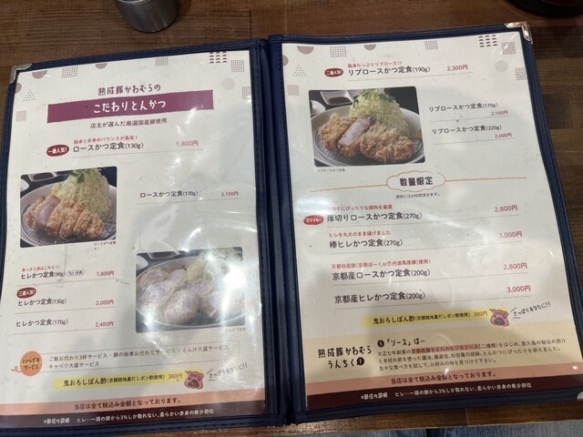 1日限定5食。土日は終日、平日は15時から提供のメニュー。本日提供があったので、祝日も終日対応のようです。内容はロース100g、ヒレ40g。とん汁とキャベツは大盛り無料。ただし、オーダー時に申告が必要。ご飯は大中小が選べて、お代わり3杯サービス。今回はとん汁・キャベツを大盛り、ご飯は大でオーダー。