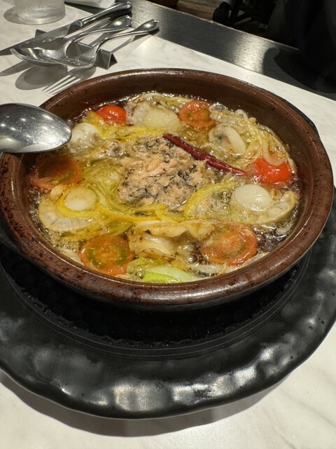 こちらのオムレツはびっくりするほどフワフワ、アヒージョは柚子胡椒風味でアヒージョなのに和風と、結構工夫されているお料理です。