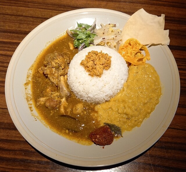 上にスリランカ料理の定番ふりかけボルサンボルがON。
