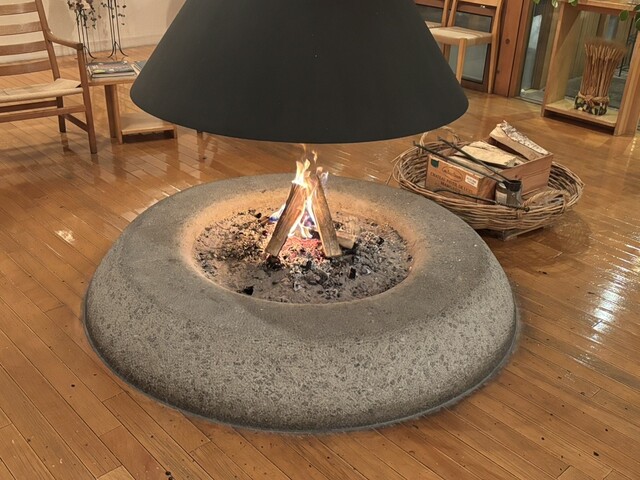 入口に薪のストーブがありますがなんとなく温もりを感じます。