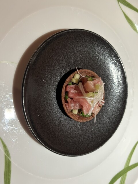2年ぶりです。新鮮なトロが、お米でできたタルトに乗っかていました。