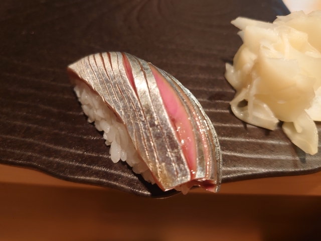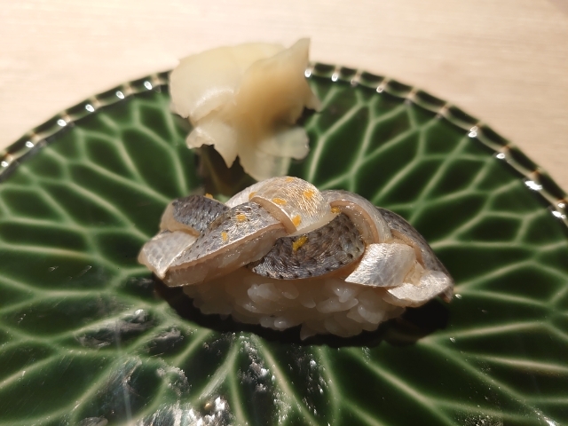 先ずは赤身、シマアジ、アオリイカ、小肌をオーダー