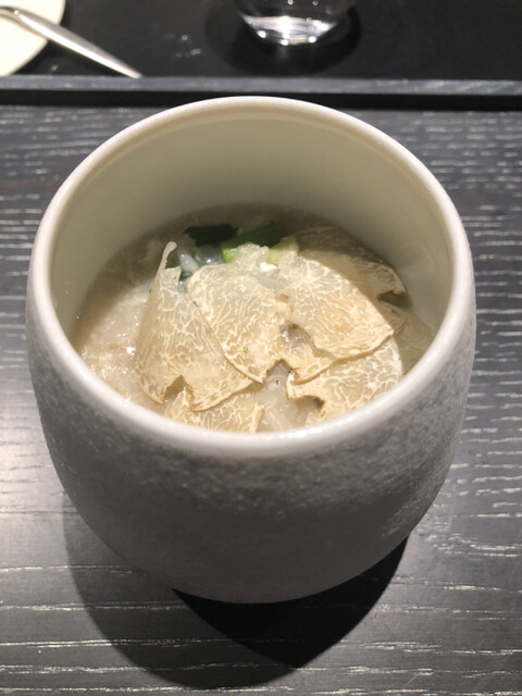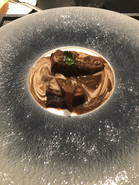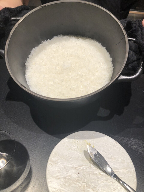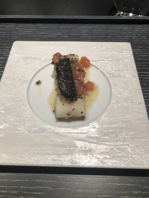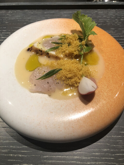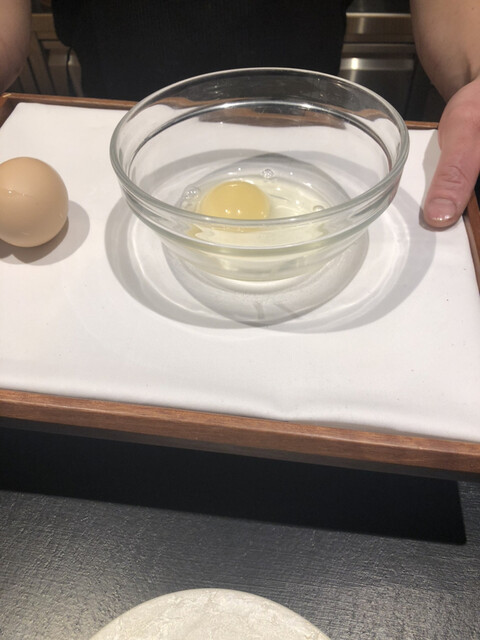 8人一斉スタートのお店です。1人客も多く店員さんもフレンドリー。寂しい思いをせずにすみます。料理の説明や素材についてもきっちり説明してくれ、ライブ感もあり料理出しもスムーズ。なぜ、その素材を使うのかまでもコンパクトに理解できるようにしてくれました。お店はワンチーム感があり、ワクワクするエンターテイメント感、ライブ感があります。目の前で伊勢海老が、鴨が、じゃがいものスフレがみるみるうちに仕上がっていくのが大変楽しい。しかも料理出しがスムーズです。待たせすぎない。超高級食材を惜しげもなくふんだんに使ってくれます。建物も立派ですし、カトラリーも素敵。ずーっと興奮しっぱなしの2時間半でした。今回は鴨の雄メス食べ比べや、牡蠣をおかわりさせていただいたり、嬉しいサプライズが大変多く飽きない2時間半でした。6時半開始9時終了9時15分退店といった感じ。印象に残ったお皿はフグのカルパッチョ。トマトジュレのソースが甘酸っぱいのですが今まで食べたことない味でした。感動。青リンゴのソルベも絶品。ドリンクがワングラス3000円程なので、飲み過ぎは庶民注意!シャルドネのワインは少しアルコールがきつくてハズレでしたが、シャンパンはおいしかった。瓶底が靴のルブタン好きのオーナーのせいで赤く塗られてるのです。しかもエチレットがお店オリジナルになっていて素敵。細かい試みがそこかしこに感じられるすごいお店でした。