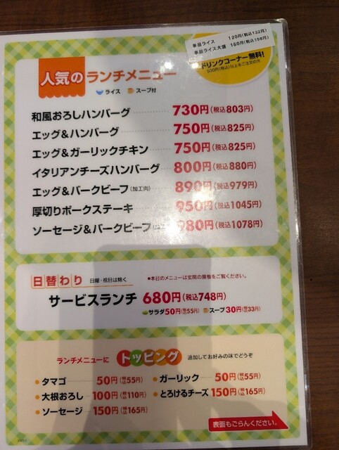 最新の情報とは異なる可能性がありますので、お店の方にご確認ください。詳しくはこちら