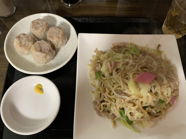 今回は娘の不在時に荷物を届けるついでで、我慢の限界でもあり。開店前に店に着き、しばし待って入店。もう一度ちゃんぽんを味わうか、皿うどんにするか…、いや、並びなら焼きちゃんぽんやろ。おすすめの焼売を付けて。