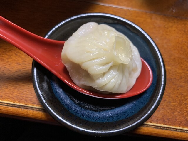 天心も到着…取り敢えず小籠包1つレンゲに取りまして、写真撮ってから汁だけ啜る。旨いねぇ、相変わらず。半分食べて、嫁さんにパスします。