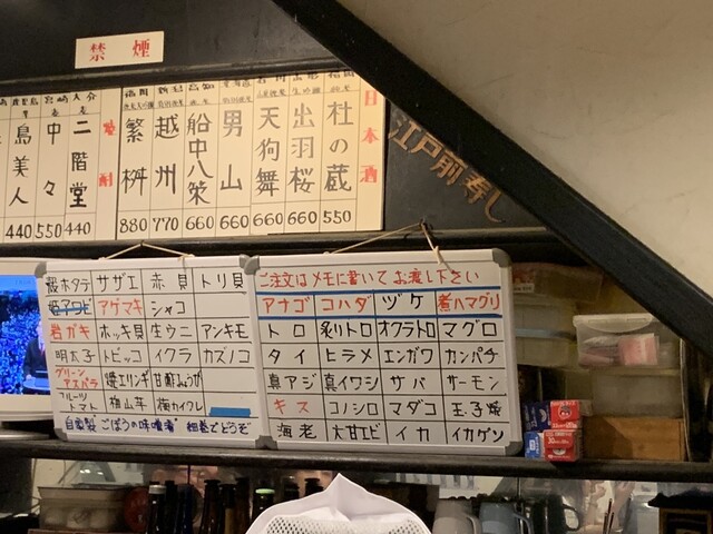 めいめいが注文したい品を私がメモして通す、という感じなので全品を覚えてもいません。しかもネタの値段は分かりません。