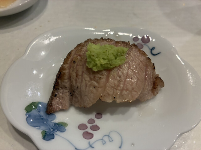 炙りトロ…こちらも箸が使えません。身の甘さに塩とわさびが絶妙。
