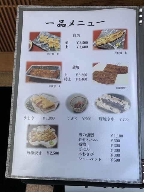 さすがに寒空の11時だと店内は人も疎らで、連れもゆっくりメニューを見ながら品定め。二人はうな重の頂上、私は前回ひつまぶしだったので今回はせいろ蒸しの特上、合わせて肝焼き串を2本注文します。本当はお酒も行きたいところですが、運転手以外の2名は午後に予定があるので泣く泣く…。