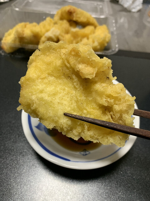 持ち帰ったとり天、トースターで水分を飛ばしていただきましたが、衣がカリカリで旨い。漬けダレにニンニクを仕込んであるのかは分かりませんが、ほのかな匂いが食欲をそそります。甘めのつゆも絶妙でした。デカいのが4切れ、これで580円は安過ぎ! 今度はお店でいただきます。