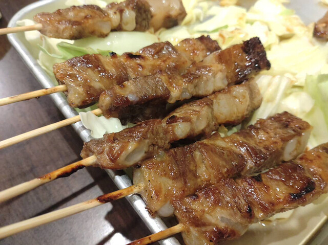 次々に焼鳥が運ばれてきます。やはり特筆すべきはとり皮、福岡は小さな団子状に皮をグルグル巻きにして、色んなやり方で脂を落として熟成させ、塩やタレでいただくスタイルですが、こちらは皮の脂を必要以上には落とさず、蛇腹に串刺しして焼くスタイル。正直、前述の形より、この蛇腹形が好みです。食感も脂の旨味も存分に味わえます。なお、我が朝倉市は脂を焼き台でじっくり落としてカリカリに仕上げ、タレをたっぷり絡ませるスタイルで、是非とも一度皆さんに味わっていただきたい。
