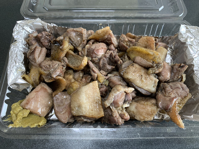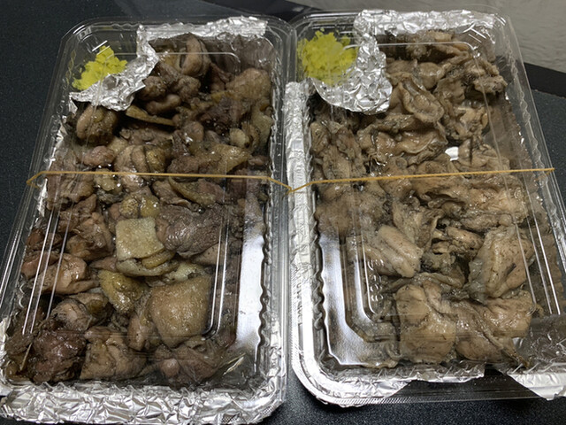 事前に予約しておらず、それこそダメ元でお昼に立ち寄りましたら「今日は余裕があります」とのことで、福地鶏炭火焼き970円とハラミ炭火焼き小500円、セセリ炭火焼き小500円をゲット!