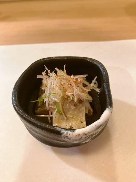 綺麗に面取りされており優しいお味です。お味噌も柔らかいお味で柚子の香りが引き立っており大将の優しさを感じとれる1品目となり期待が高まります。(^^)