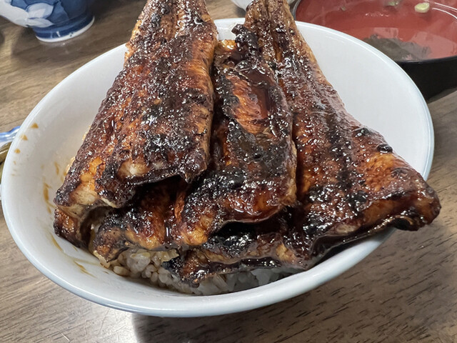 いただいたのは、上うな丼4,300円と肝焼きです。鰻1匹半が乗ってます。