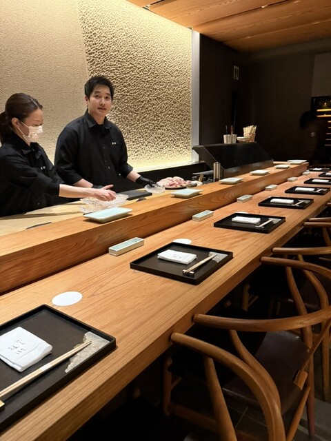 シックで落ち着いた高級感のある外観は既に名店のオーラが溢れ入店するとカウンター10席のこれまた高級感満点の空間が広がります☺️