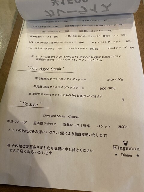 久しぶりのキングスマンさん。美味しかったです。ご馳走様でした。