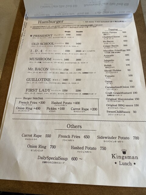 初めてキングスマンさんのハンバーガーを口にした時には美味しすぎてびっくりしました!それからキングスマンさんのハンバーガーのファンなのですが。ポテトもめっちゃ美味しいです!都内でトップを争うハンバーガー屋さんより、私はキングスマンさんのハンバーガー&ポテトが一番好きです。