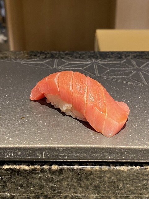 シャリは小さめで酸味は抑えめ。ネタとシャリの一体感、口に入れたときの程よいとろけ具合など丁寧で熟練された技を感じる大変美味しいお鮨でした。