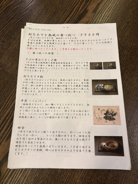 初めての写真投稿(説明書だけ)、食べ比べの蕎麦三昧に感動。こんな食べ方があるんだ〜。