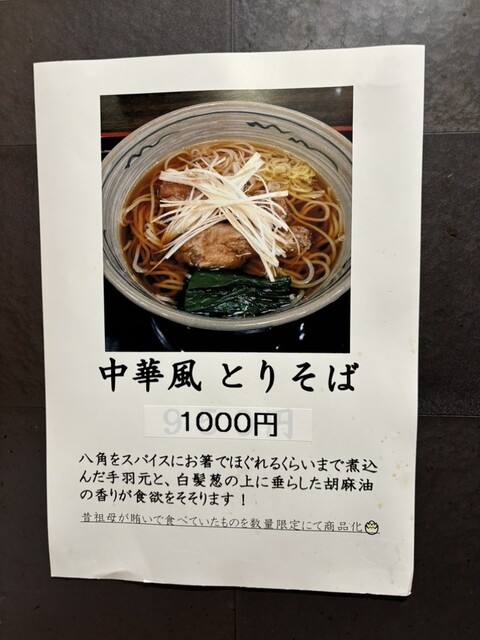 祖母から教わったメニューとかで、八角をベースにスパイスで煮込んだ手羽元が2本に、そばつゆは胡麻油の香りが売りというメニュー。