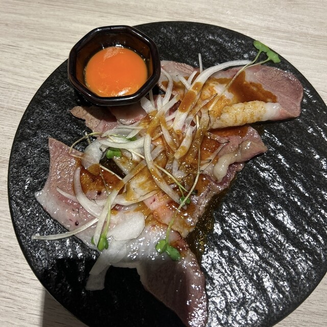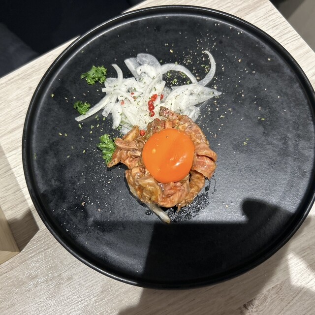 ④道産ブリスケの炙りユッケ風 極濃卵黄