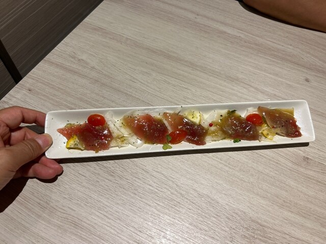 カルパッチョは、マグロ、タコ、サーモンの3種類。