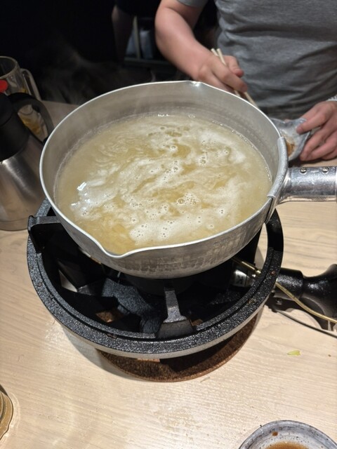 ジンタレ(ジンギスカンのタレ)にほうじ茶を注ぎ、つけ麺風にいただきます。