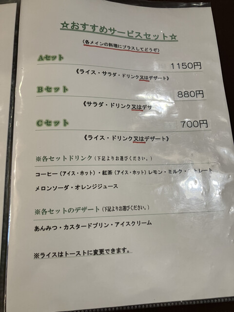(ライス・サラダ・ドリンクorデザート)¥1150
