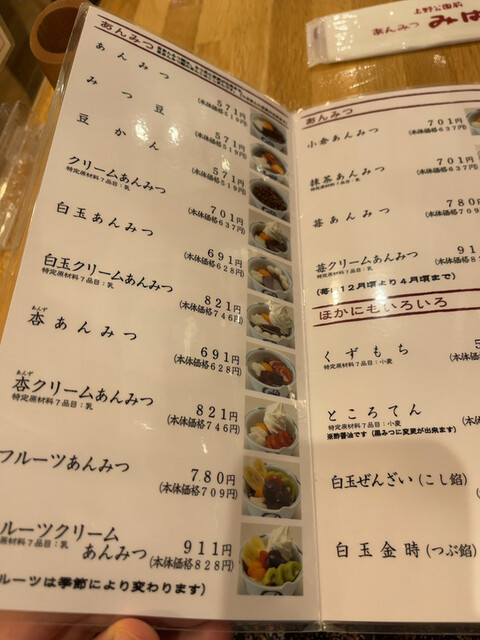 美味しいソフトクリームがのったあんみつ