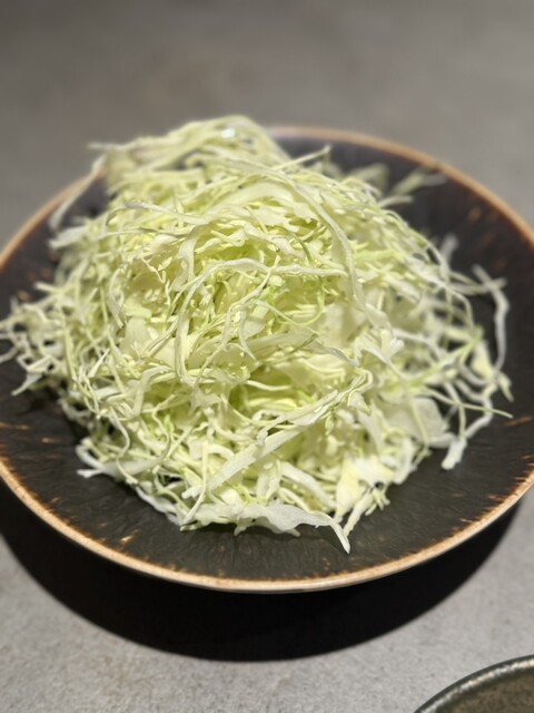 ご飯は、雪若丸。キャベツには黒トリュフのドレッシングをかけていただきます。