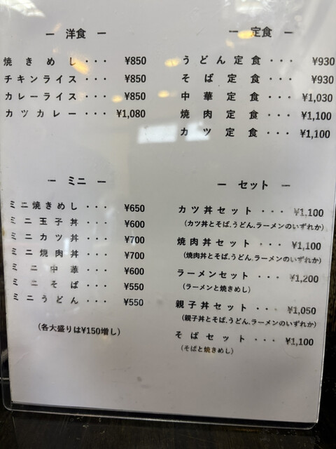 以前から気になっていた焼肉定食とラーメンセットです。焼肉は塩コショウが効いた牛肉が少し味つけされてご飯が進みます。こういう焼肉定食をずっと食べたいと思ってました。ラーメン定食は普通の中華そばとミニ焼きめしですが、チャーシューメンかと思うくらい分厚いチャーシューが4枚入ってます。中華そばもチャーシューもレベルの高い味で980円とコスパも文句なしです。ここはもう50年以上続く老舗で なにをいただいても間違いないですね。