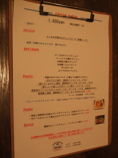 フォルトゥーナさんには1年ほど前に訪れているが、そのときのメニューとそれほど変わっておらず、相変わらずの多彩さ。
