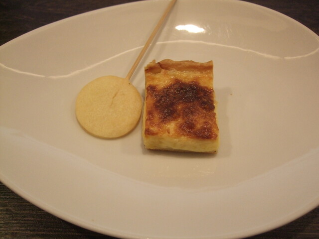 チーズのサブレスティック、ベーコンと玉ねぎのキッシュ