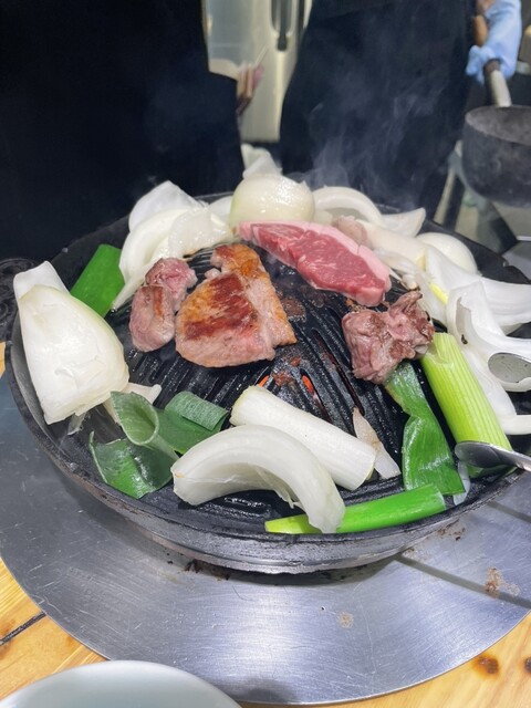 座ってすぐに鉄鍋?にたまねぎ、葱が並べられて