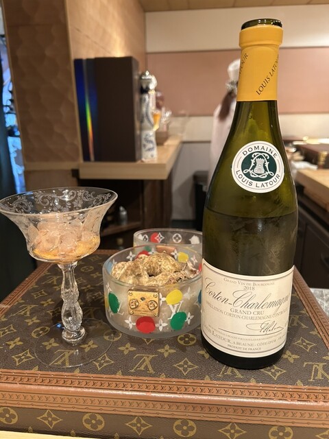 今回は大将おすすめのワイン「コルトン・シャルルマーニュ グラン・クリュ(約75,000円)」をいただきました。