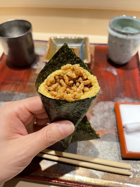 個人的には、あん肝×シャリのポン菓子の巻物と、焼きと刺身のふぐの和物が好みすぎました。
