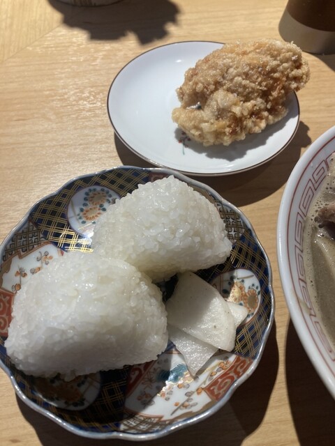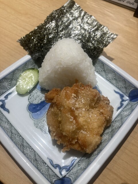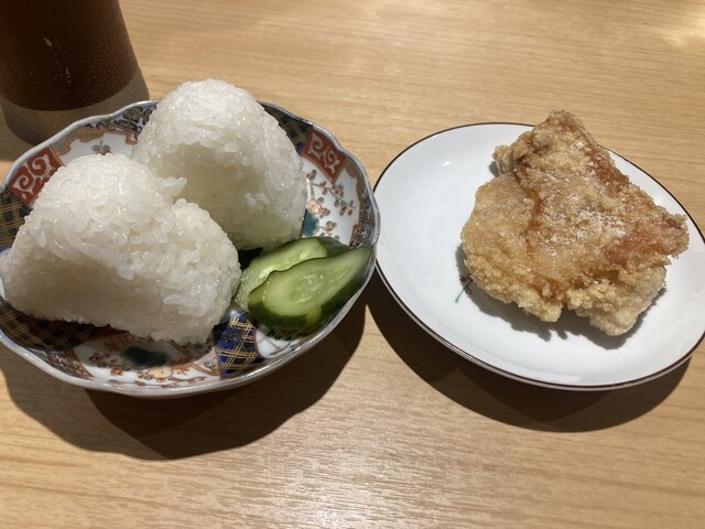 良き塩梅のおにぎりと唐揚げ(゚ч゚)ウマイ!!