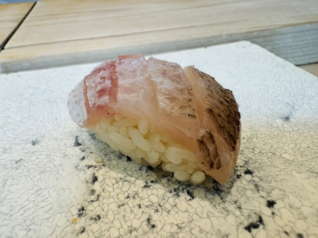 種の切りつけ、大きさ、厚み、気をつけることは数多あります。その中でも温度が最も大事だと思っております。ご来店当日も、舎利と種の温度を記したメニューをお配り致します。二つ寄り添って、なんばの一貫の鮨です。