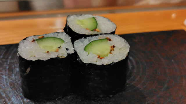 更に、芽ネギの握り(裏メニュー)、ヒモキュー、大人の干ぴょう巻でフィニッシュ。