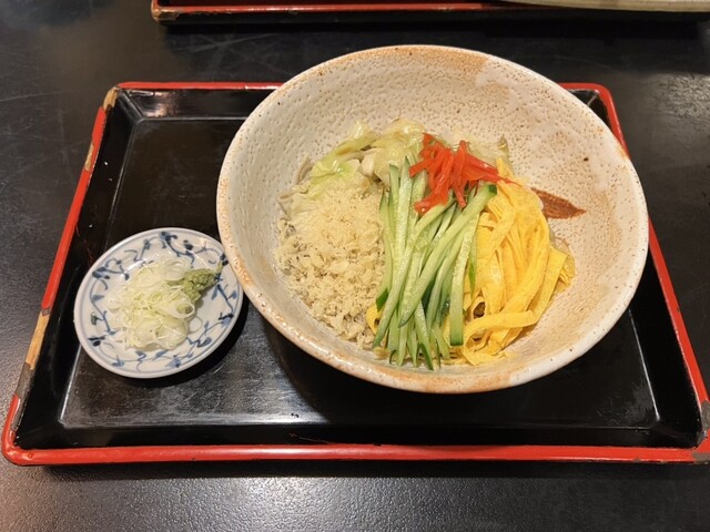 冷したぬきには、茹でたキャベツが入っていました。冷したぬきの具材としては、初めてでした。