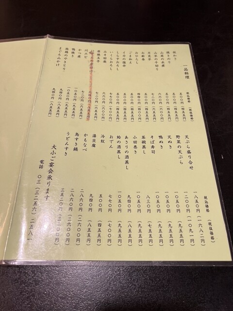 天ざる(中エビニ尾、イカ、キス、野菜)1,600円、冷したぬき1,030円、かつ丼1,050円を食べました。