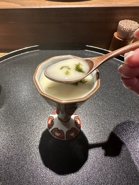 ●新玉ねぎの擦り流し~あおさをのせてアクセント