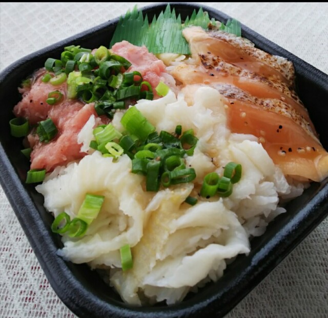 「どんまる丼」はまぐろ・いか・サーモン・ねぎとろが乗っていていろんな種類を楽しめたようです。