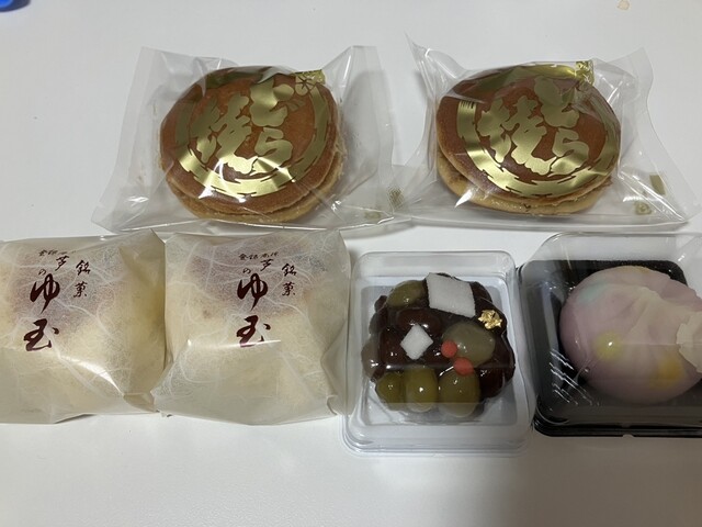 目の前の道を通った時、あの店はなんだと思っていました。和菓子屋さんでした。芦のゆ玉が有名なんですね。ふわふわで美味しかった。生菓子も一緒に買いましたが、私は生菓子の方が気に入りました。一般的に少し甘めかと思いますが、最近のは甘さ控えめが多いのでこれぐらいの甘さが欲しいと思うおばちゃんです。緑茶ととても合います。また行く機会があれば寄りたいです。