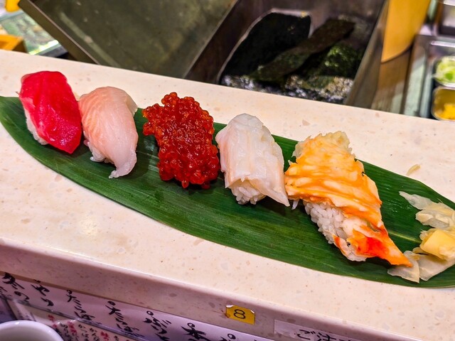 店内は立ち食いスタイルながら、職人が目の前で握る本格的な寿司を提供。北海道直送の新鮮なネタが豊富で、特にニシン、筋子、ホタテなど、北海道ならではの味わいが楽しめます。また、イカ耳、赤ほや、真イカ知内ニラ軍艦など、他ではなかなか味わえないネタも揃っていて、五感で楽しめる。