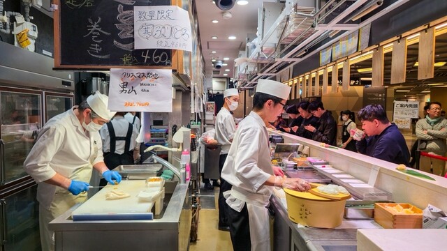 東京駅直結の東京ミッドタウン八重洲にある、北海道の旬の味を気軽に、そして本格的に楽しめる「立ち食い寿司 根室花まる」。北海道・根室発の鮮度と職人技を、立ち食いスタイルで気軽に楽しめる寿司店。
